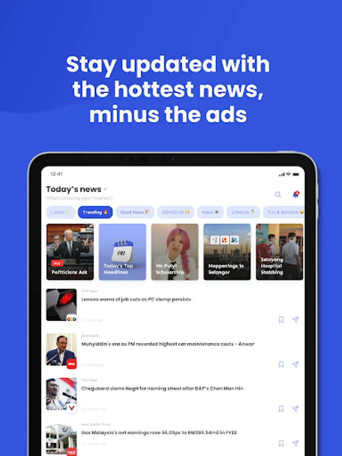 See the latest news from New Straits Times (NST), Free Malaysia Today (FMT), SAYS, The Vibes, Berita Harian (BH), Harian Metro, Utusan Malaysia, Sinar Harian, Getaran, Amanz, Oriental Daily, and more trusted news sites in a fast, smooth app experience.