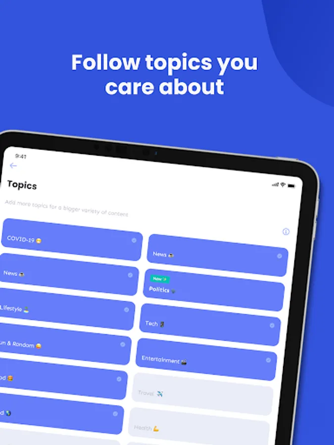 Choose your favourite news sites and topics - there’s politics, tech, sports, food, animals, and 25 more to follow. You can even decide the amount of breaking news alerts you want to get on your phone.