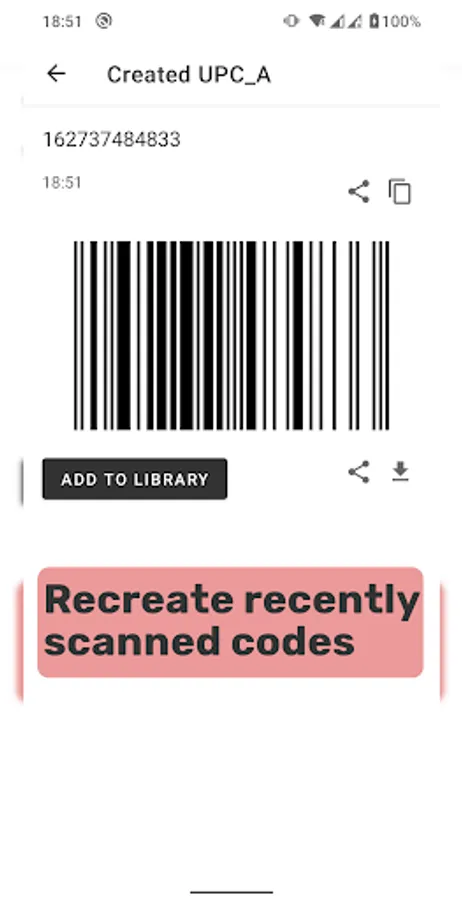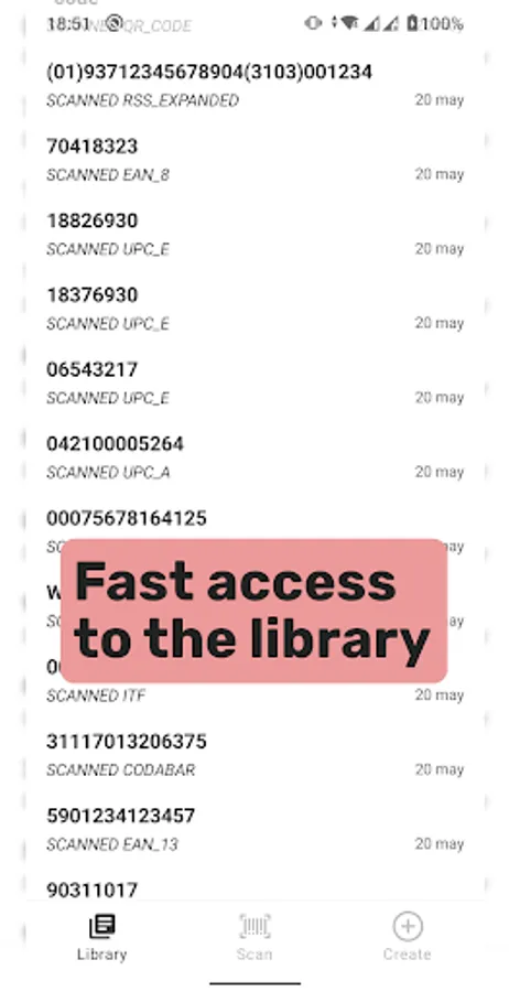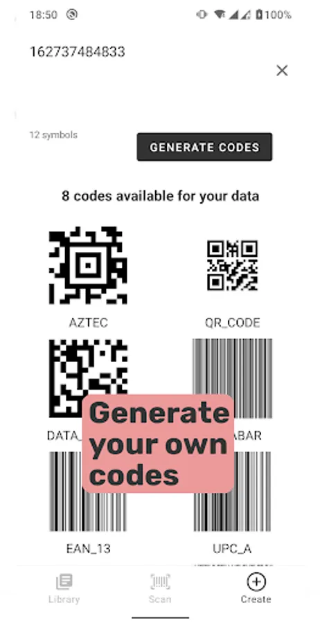 This scanner also supports creating different types of codes with your own data which can also be saved into the library.