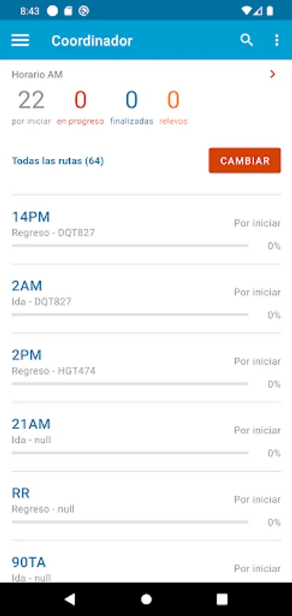 - View all the routes by status (to start, in progress, finished and in relay mode)