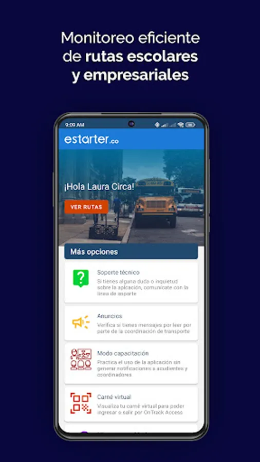 The Starter Drivers application helps drivers and route assistants record information related to the logistics of their business or school routes. Among its main functionalities, the following stand out: