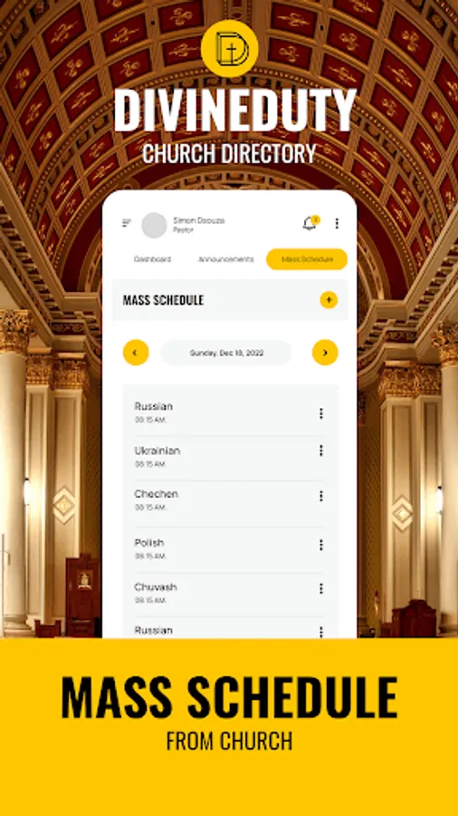 Stay connected and informed with push notifications for events and updates. Easily search for churches near you and view their contact information, service times, and events. Create and manage events with ease, from scheduling to promoting. Streamline church administration and communication with members, using our system.