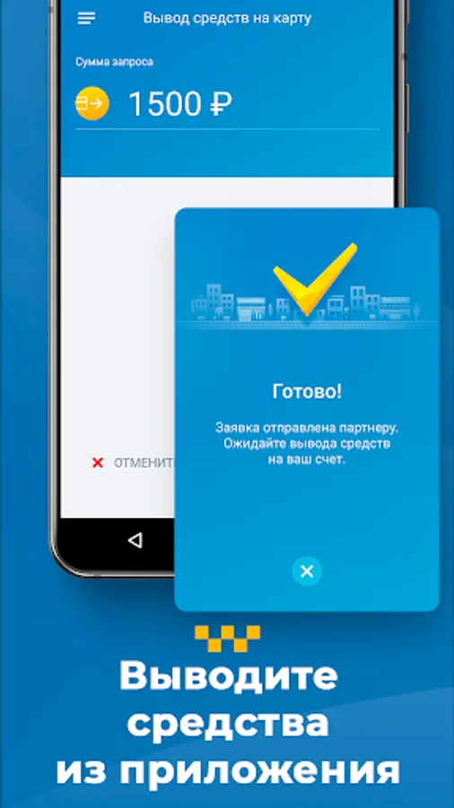 The application GLOBAL TAXI - Instant payments in a taxi "" helps to withdraw money from the Taximeter in a matter of minutes. You just need to link a bank card or QIWI wallet, enter the required amount - and the earnings are already in your hands!