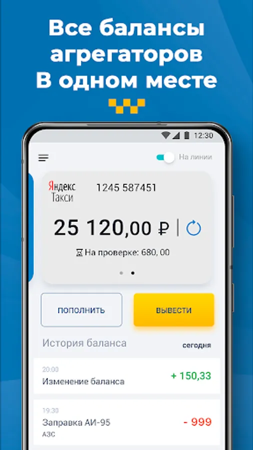 Application "" GLOBAL TAXI - Instant payments in a taxi "" is a driver's personal account, thanks to which registration, withdrawal of money and fulfillment of orders in a taxi will become even easier!