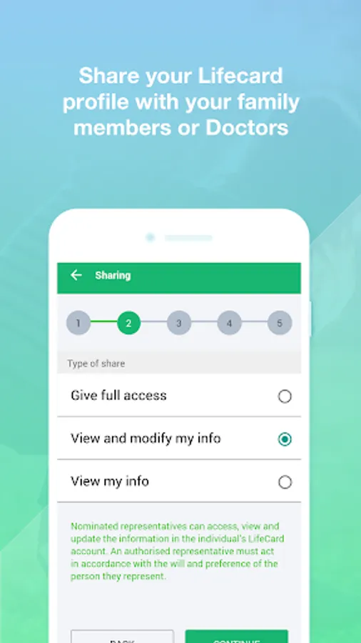 - Add family members or health professionals to your share list so they can access your record as needed