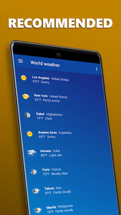 Free, simple and trustworthy weather forecast without ads for any place in the world. You can use the GPS location or enter the city name manually (no additional permissions required).