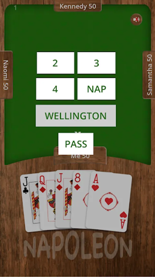 Wellington - the bidder undertakes to win all five 5 (same as Nap, but for a higher reward).