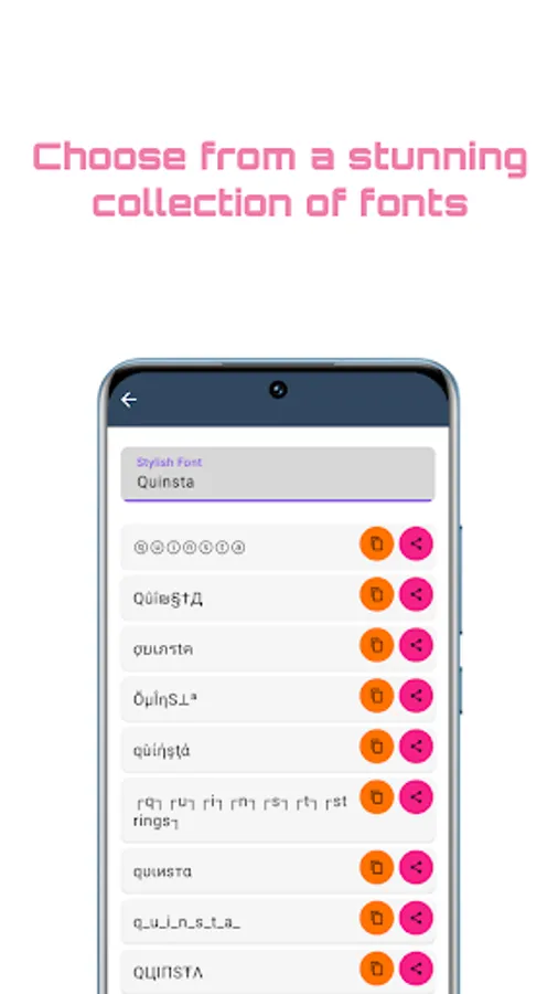 Stylish Fonts: Need decorated cool fonts for your chats or Instagram profile or posts? Well, QuinSta has dozens of fonts to choose from. Just type your desired text and click on copy button!
