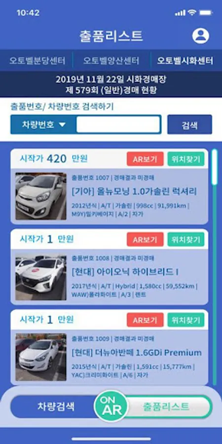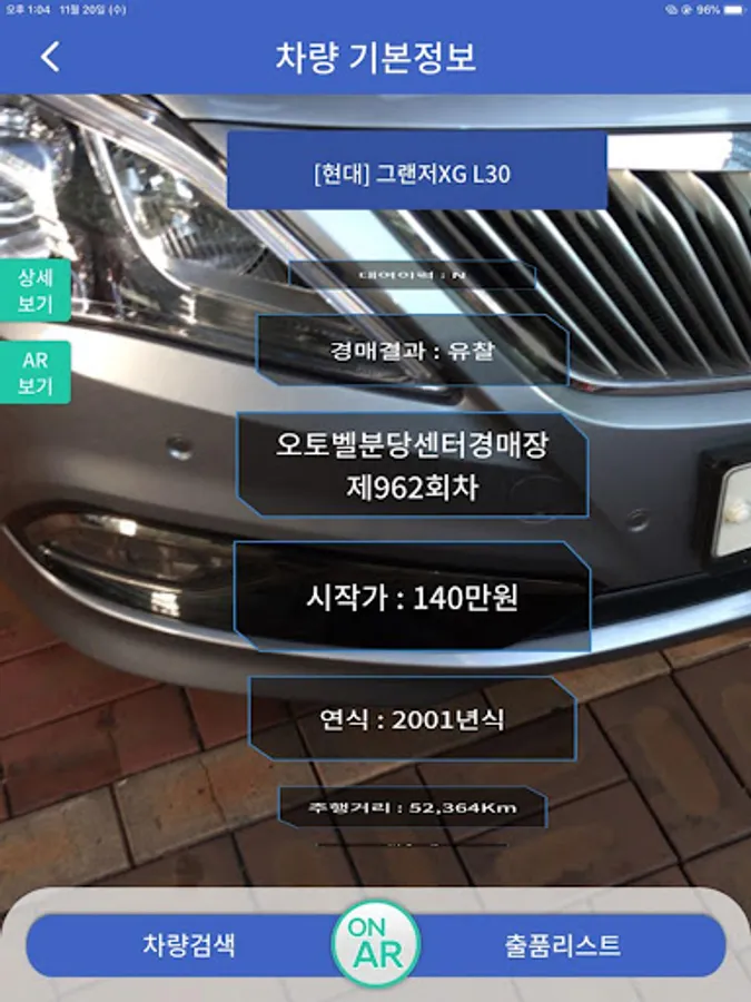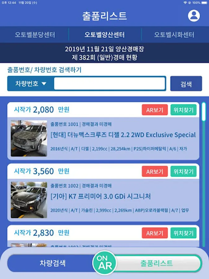 You can check the location and performance check history through the augmented reality vehicle of the Glovis used car auction.