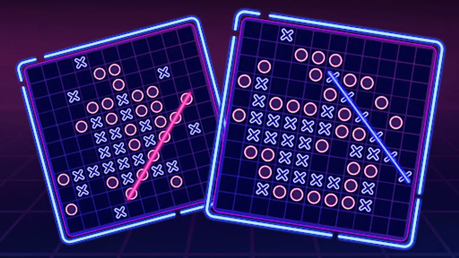 β Vibrant neon visuals bring a modern twist to this classic tick tock toe strategy game and 2 player games