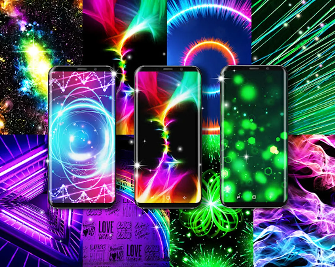 Glowing backgrounds with disco abstract elements and luminous animations will make your phone very special and shiny.
