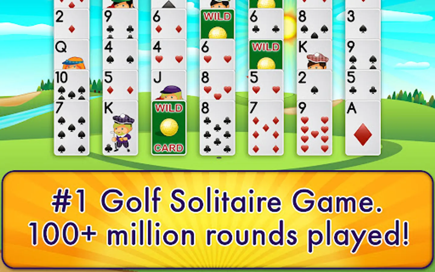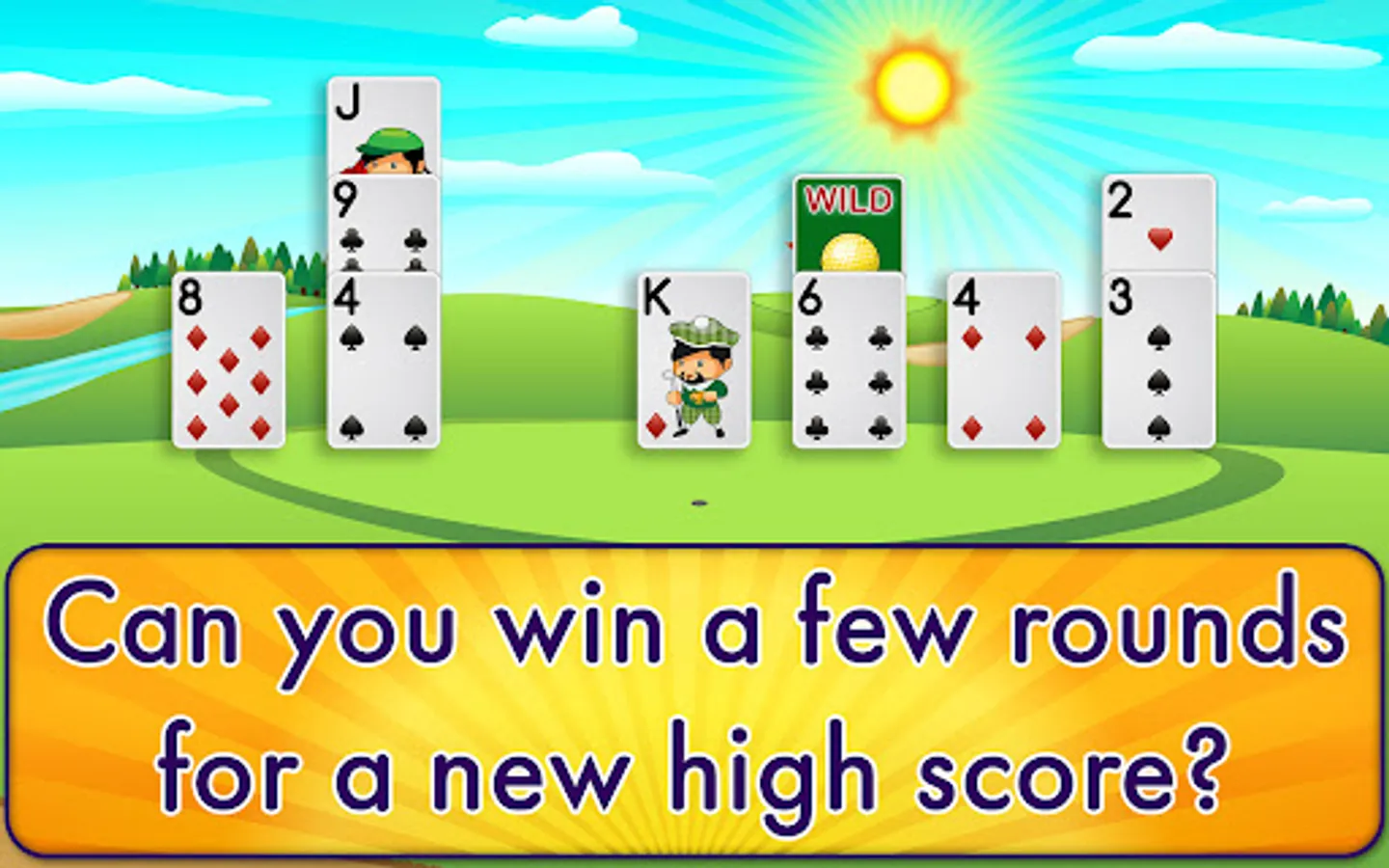 Straightforward instructions explain how the game works. To win a round, clear the cards from the golf course before the deck runs out by simply matching cards that are one higher or lower than your current card. Use wild cards to get out of tight spots! Get rid of the cards on the top line for extra, mega points! Play multiple rounds to beat your high score!