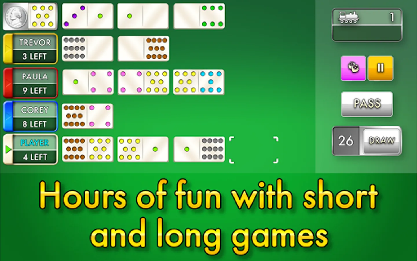 A family-friendly and fun game of dominoes, Mexican Train Dominoes Classic is at the station with carriagefuls of features. Play round after round alone or with friends, practice your tactics, and win!