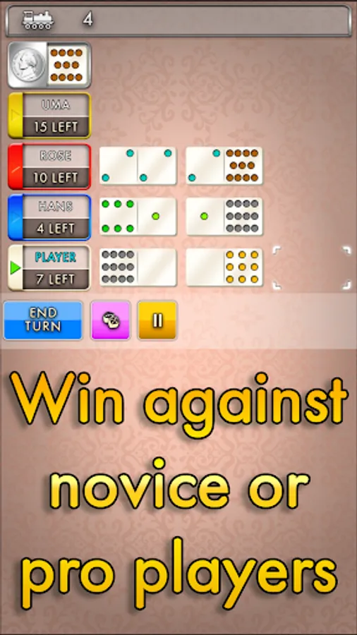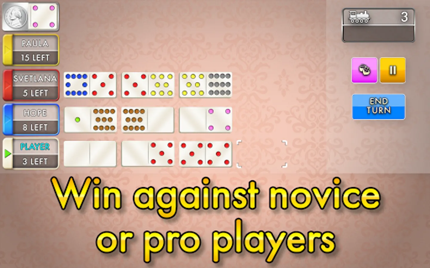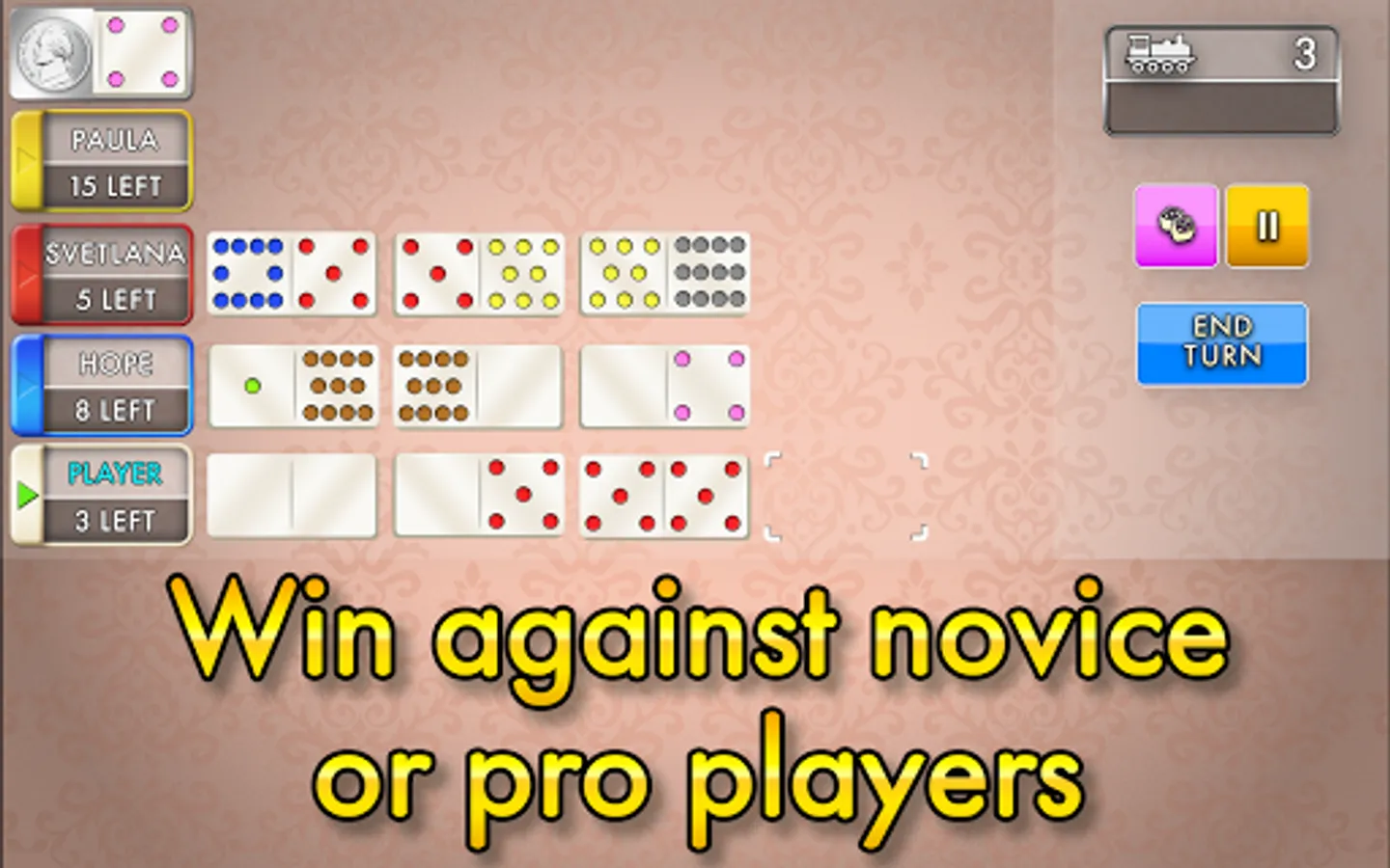 Mexican Train Dominoes Classic is played over multiple rounds with the aim to keep as low a score as possible. The winner is the player with the lowest overall score at the end of the game! A step-by-step tutorial and written instructions will help you throughout, which can be accessed at any time via the menu.