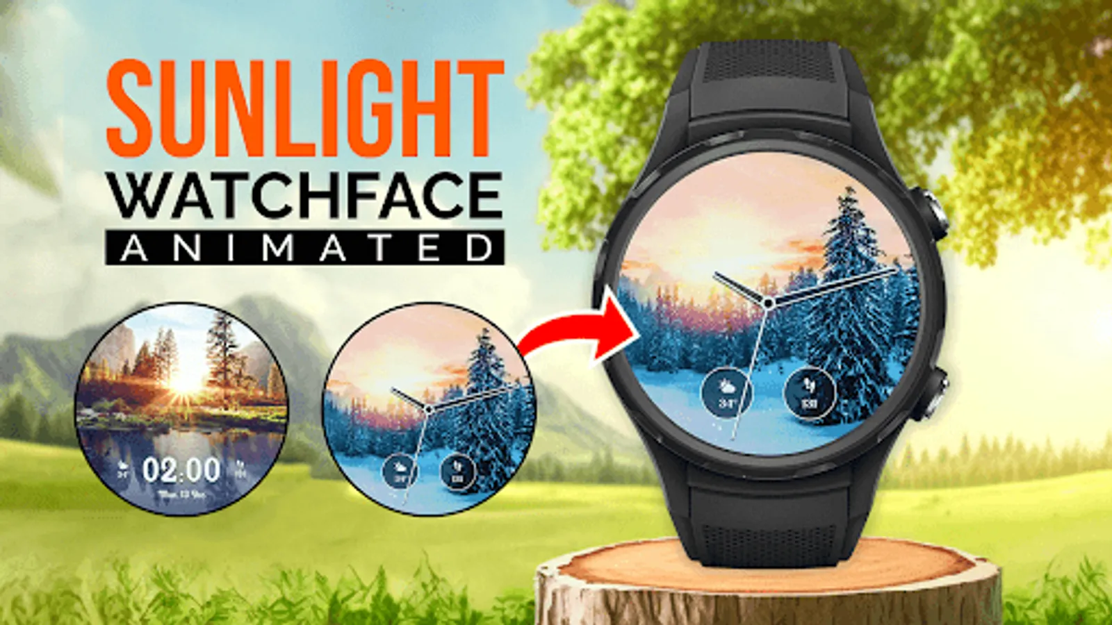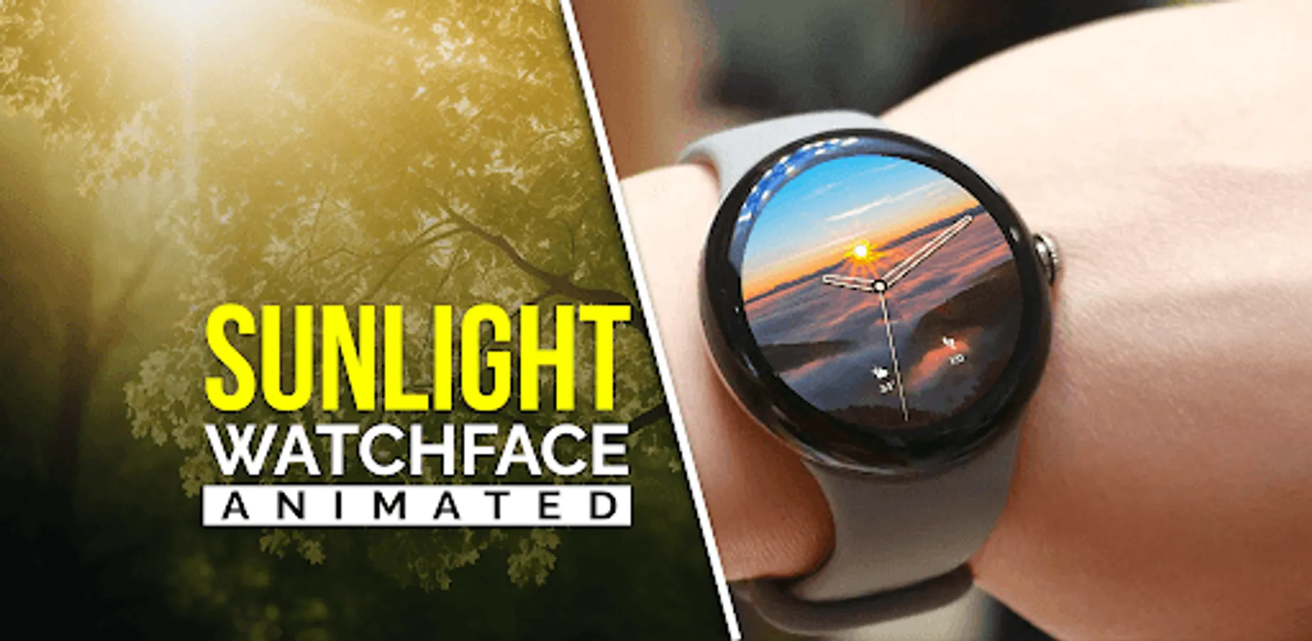 Experience the beauty of sunlight right on your wrist through this sunlight watchface. Watch faces include from sunrise to sunset sunlight. All the sunrays watchface are animated.
