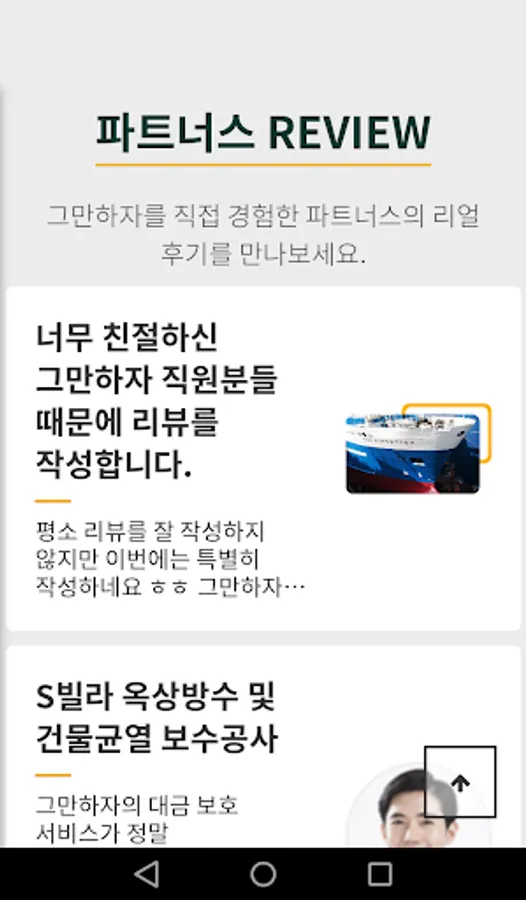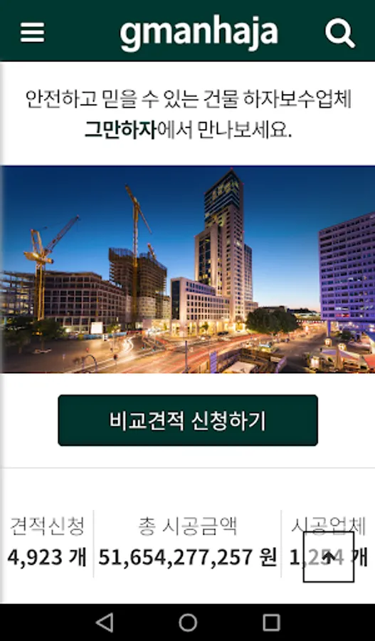 The building defect repair market corresponds to the lemon market, where information asymmetry between client and contractor is serious and it is difficult to trust each other. It is a platform service company that can meet the professional company that is suitable for construction based on reliable data to solve this problem. It is not just a simple connection but a system that manages the whole process so that the safety transaction is done to the end, and it will change the working environment as an assistant of the customer and the contractor.