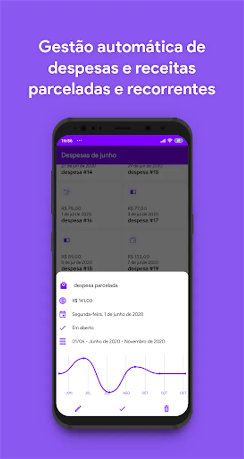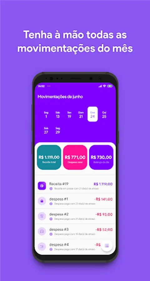 Debt was developed so that you have control of your money month-by-month without complications. Our app offers a clean and friendly interface so that you have the maximum ease of managing your month's income and expenses with graphs and analysis of your current financial situation to help you control your expenses.