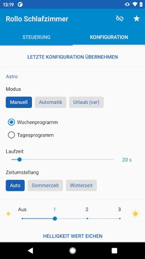 Full control thanks to the new Blind Timer app. Simply config- ure opening and closing times or activate the comfortable as- tro function. Sunrise and sunset are automatically determined and opening and closing times can be individually adjusted ±120 minutes according to your needs.