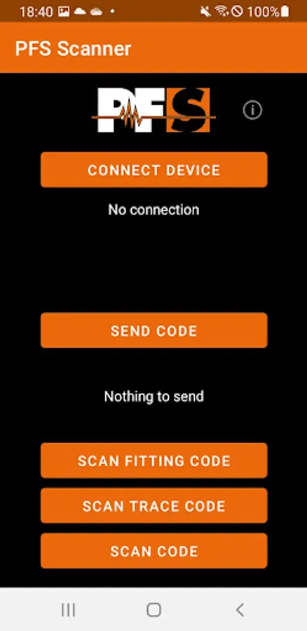 With this app you can scan barcodes or matrix codes and transfer the data to a connected PFS device with Bluetooth support.