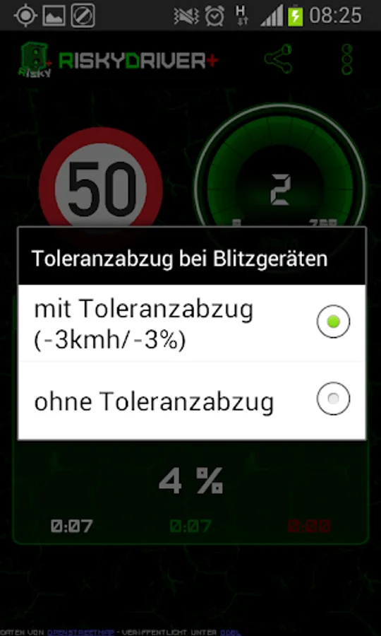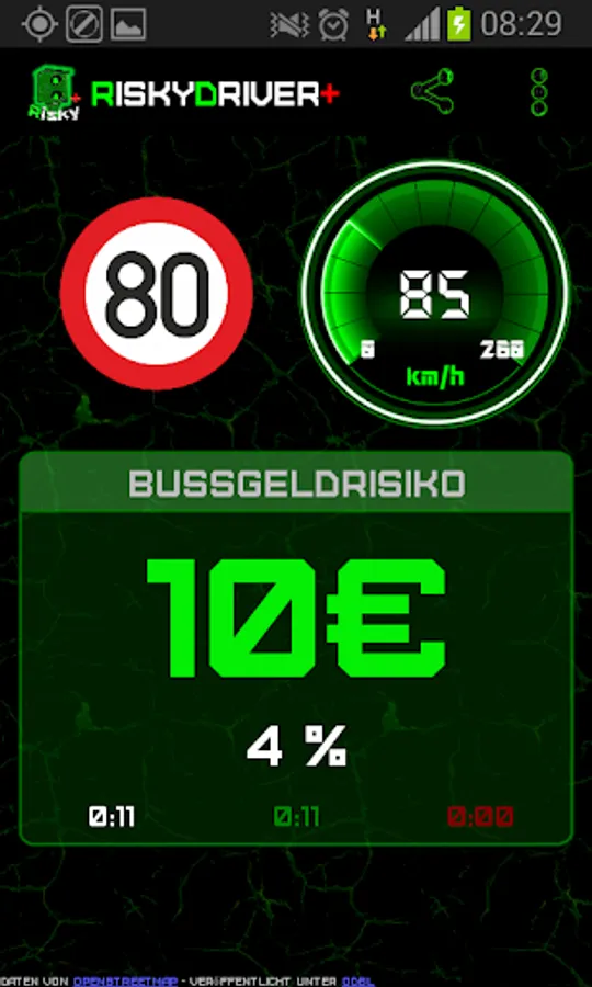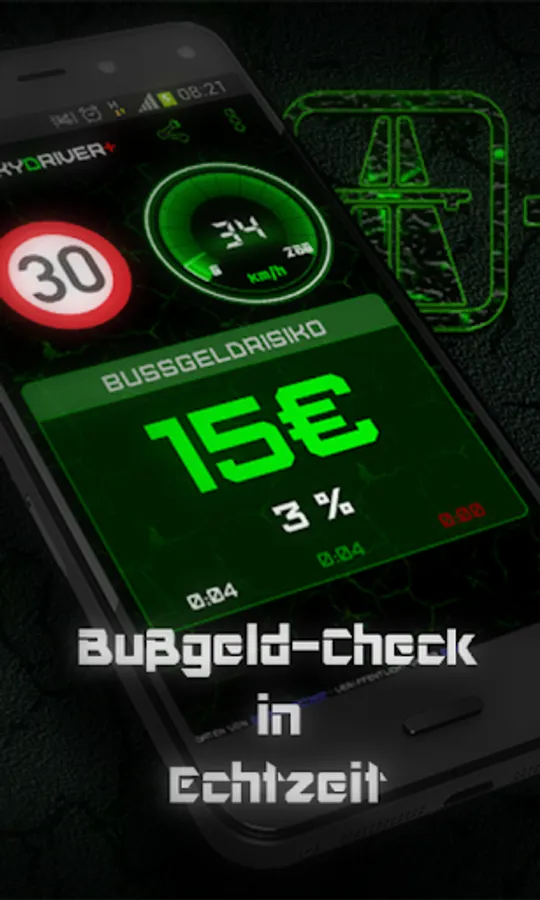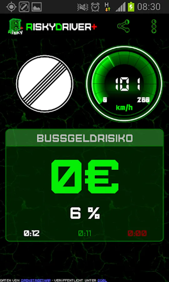 The Risky Driver compares the current speed with the current speed limit and is calculated after Bußgeldkatalog a potential sum of money which would be due in the event of flash attack. It provides only an indication, since the data is determined somewhat delayed and there is no warranty for details.