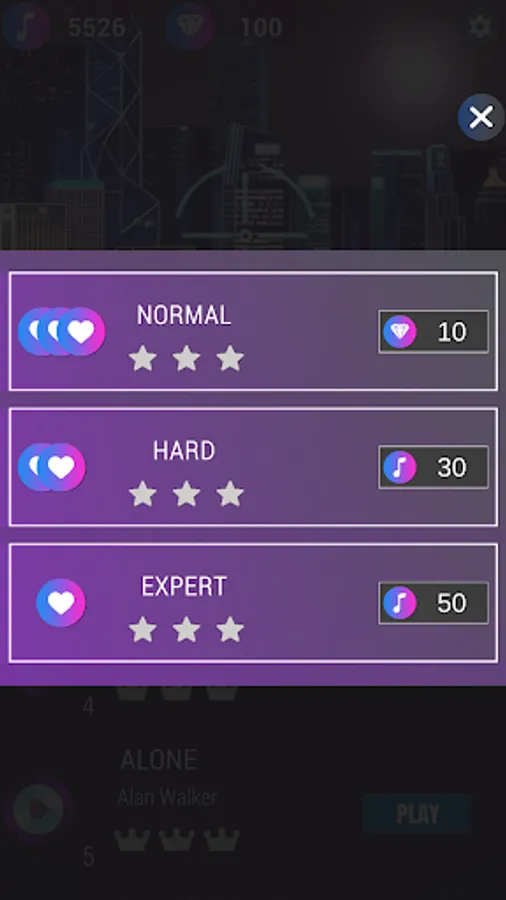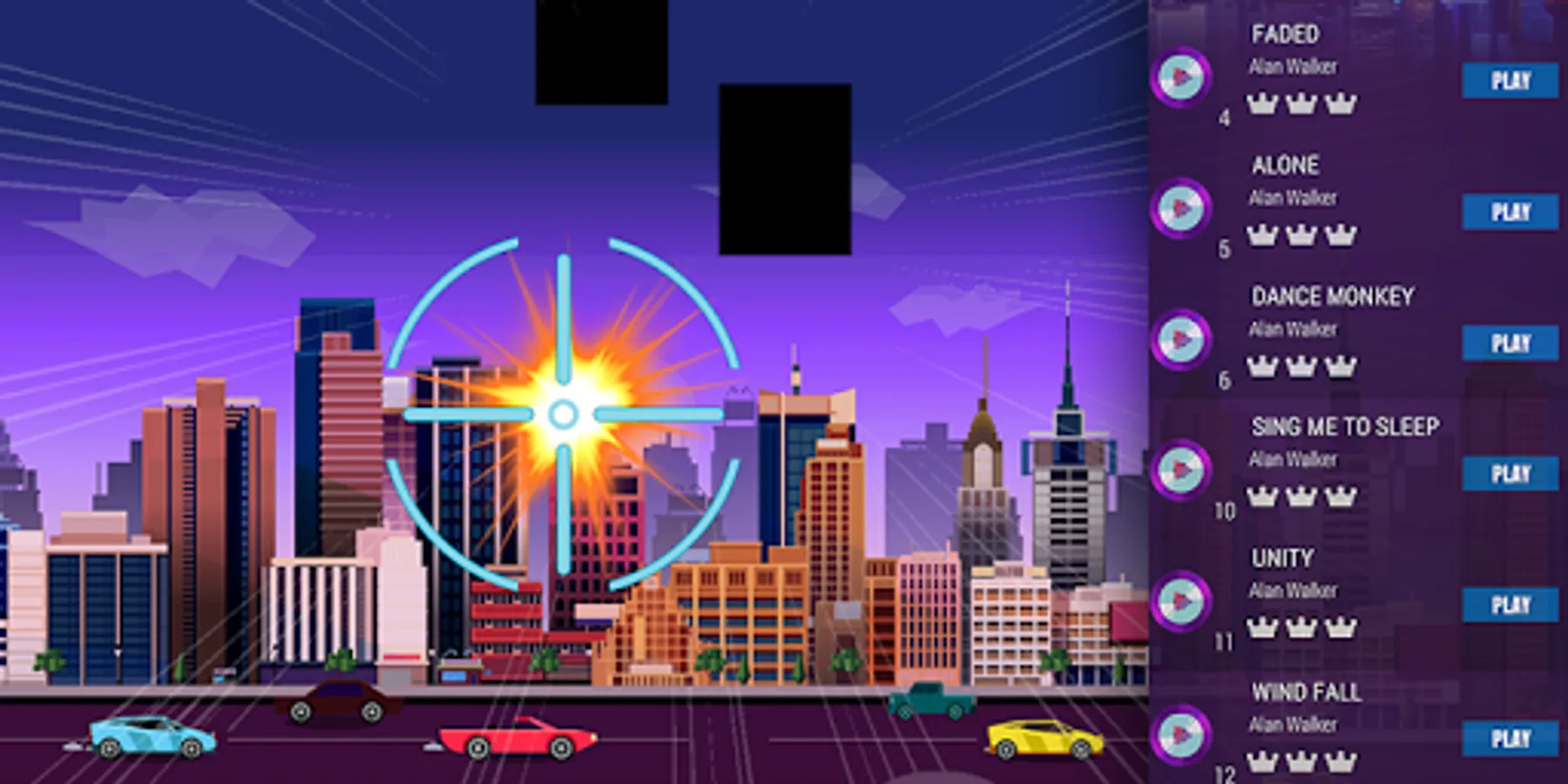 - Choose a song or play levels