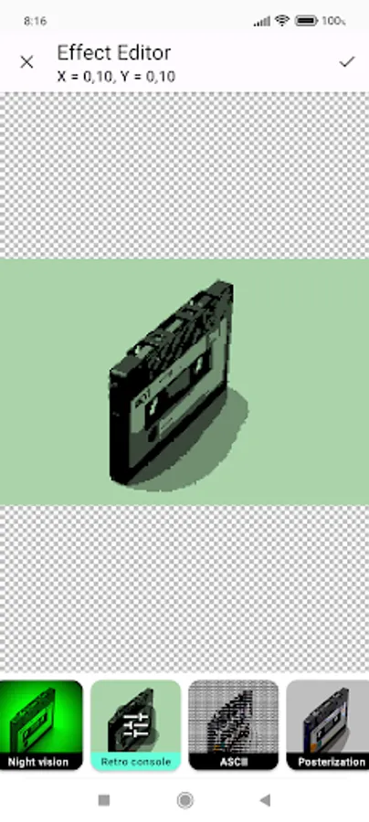 Simple and clean interface in Material Design style. Apply effects with just a few taps.