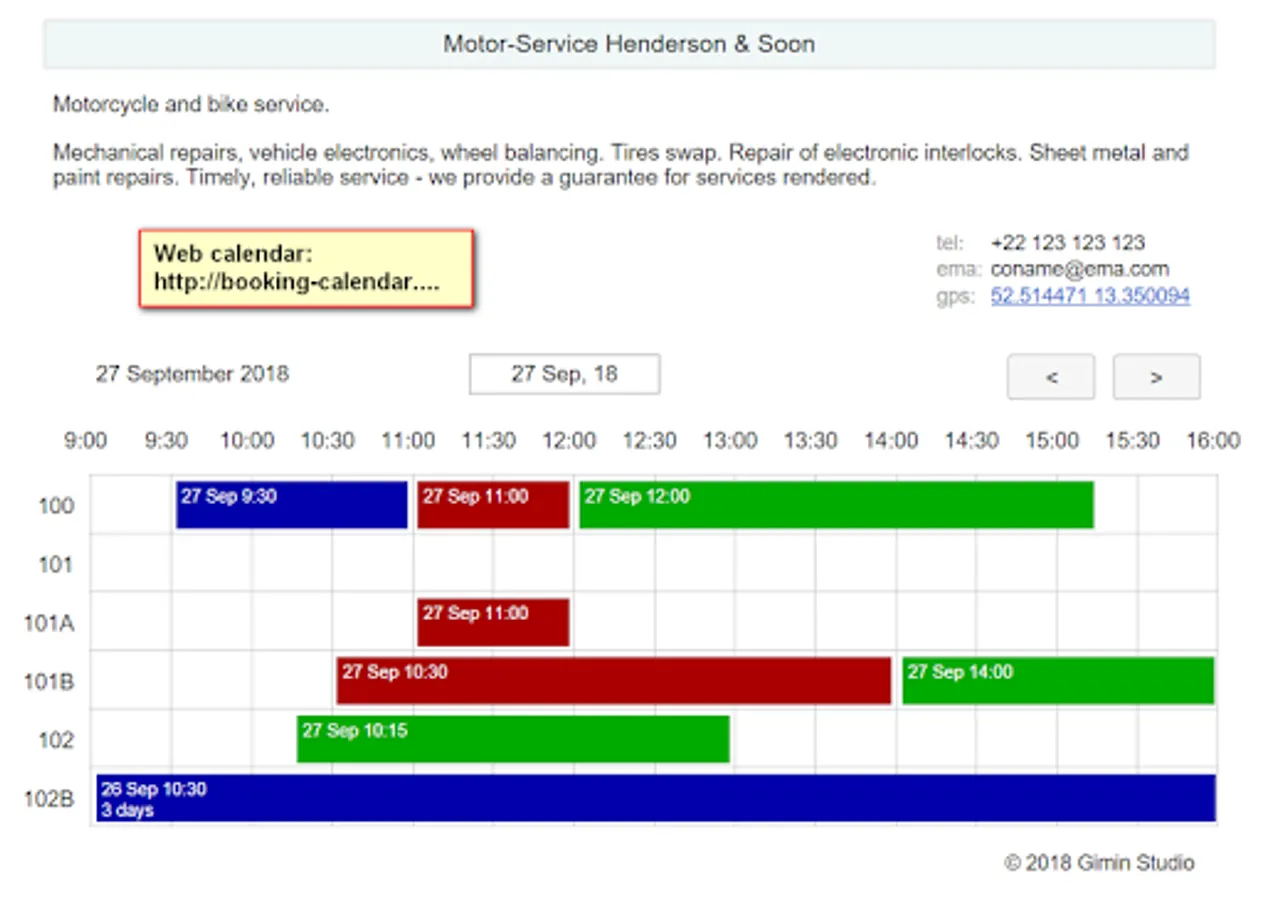 - resources management: (ex. room, car) in service/out of service, description and note,