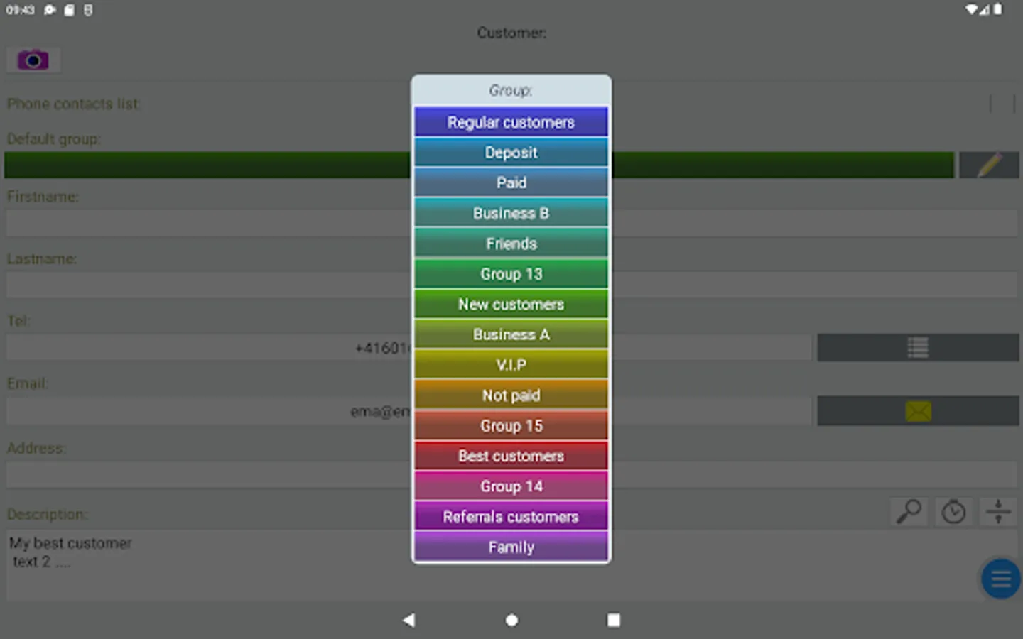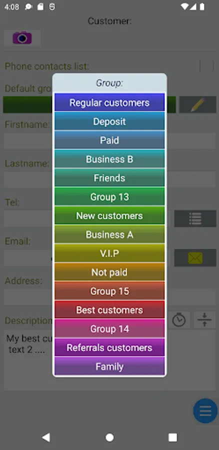 - customers management: contact data, groups, descriptions and notes,