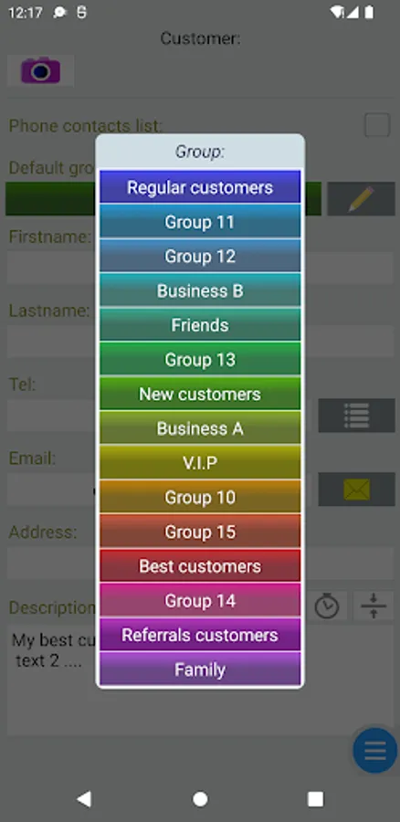 - quick ( single click ) SMS messsaginig to many customers selected by group or by events date.