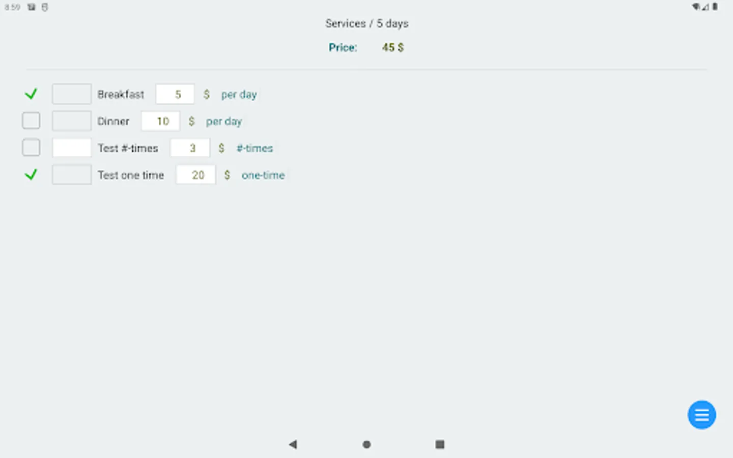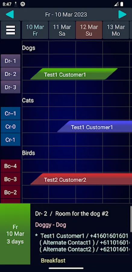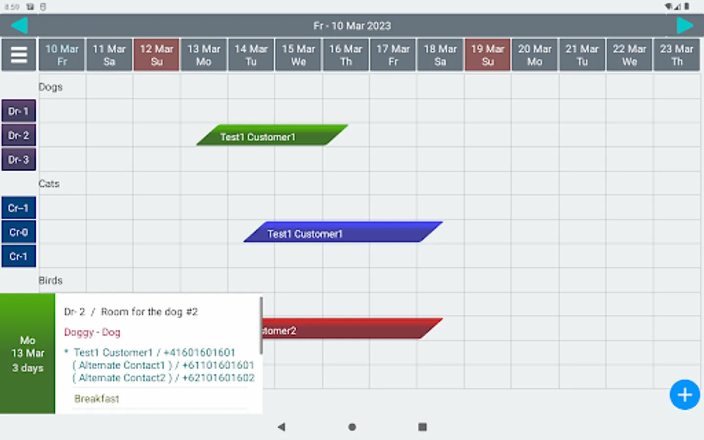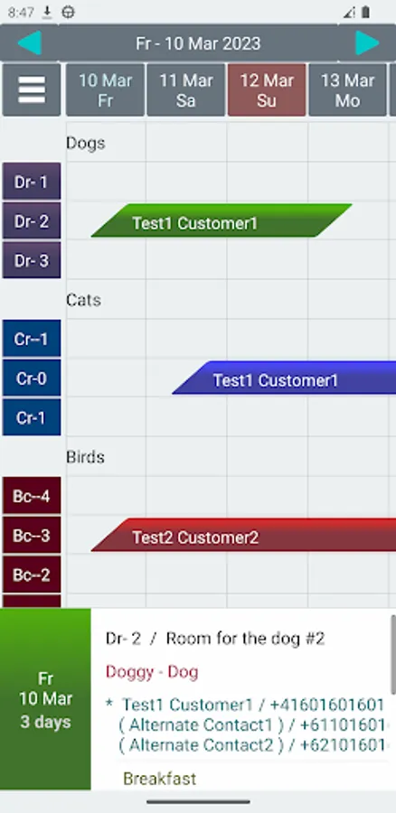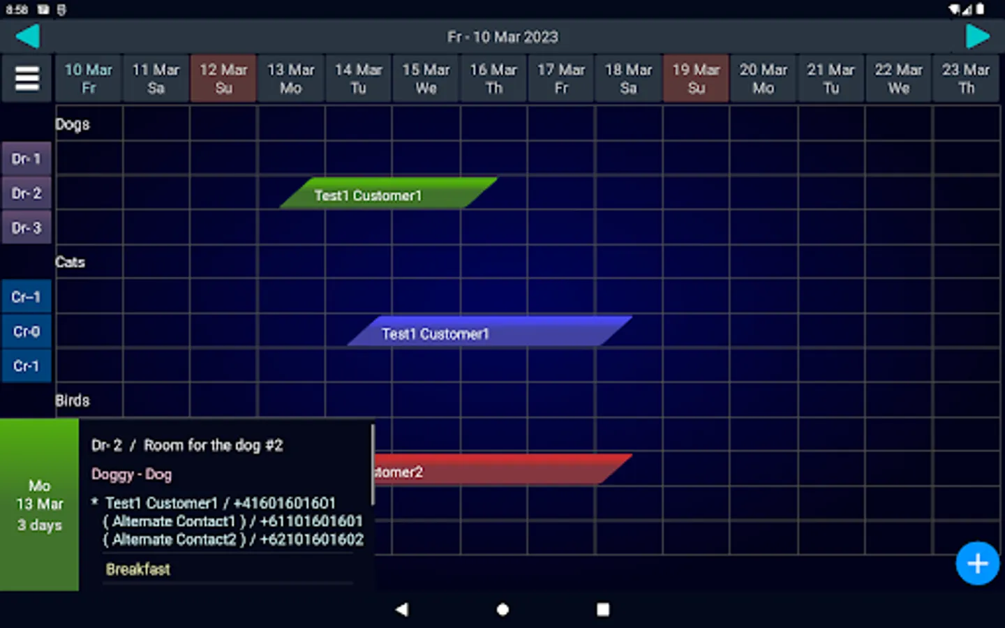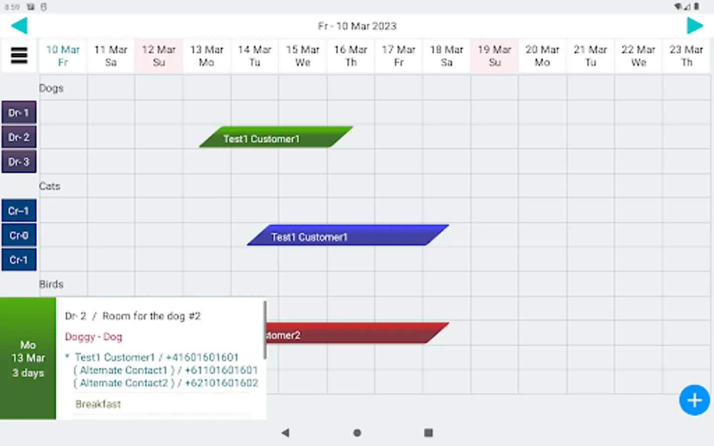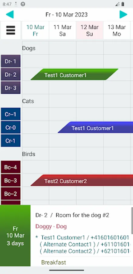 - two reservation/booking modes: from-to midnight or from-to part of the day.