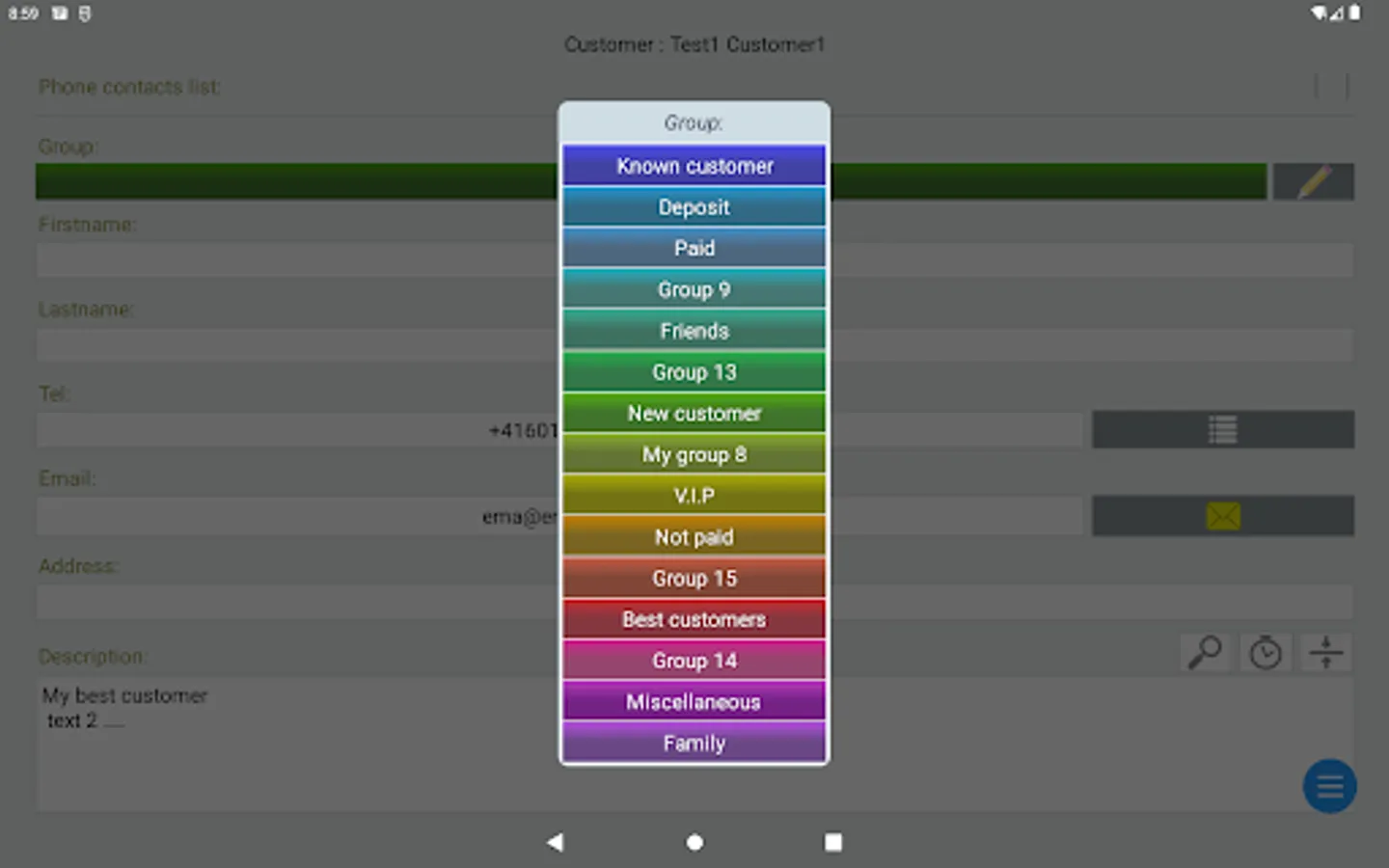 - quick ( single click ) SMS messsaginig to many customers selected by group or by events date.