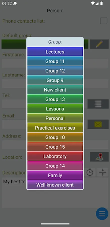 - quick ( single click ) SMS messsaginig to many, selected by group or by events date.