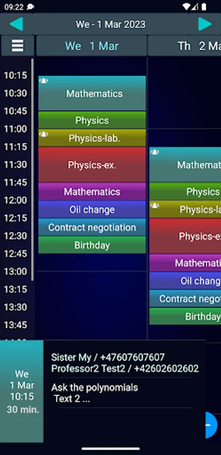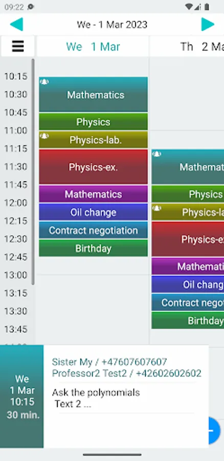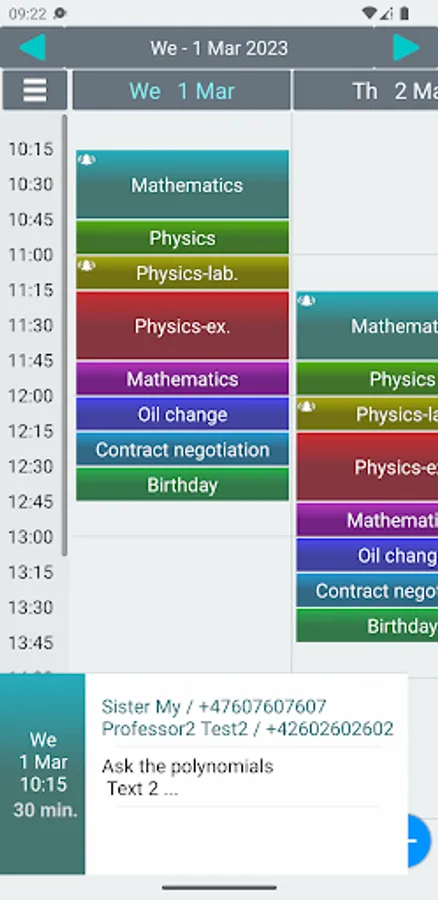 - Support for recurring events (sequential) (eg, school lessons, training).