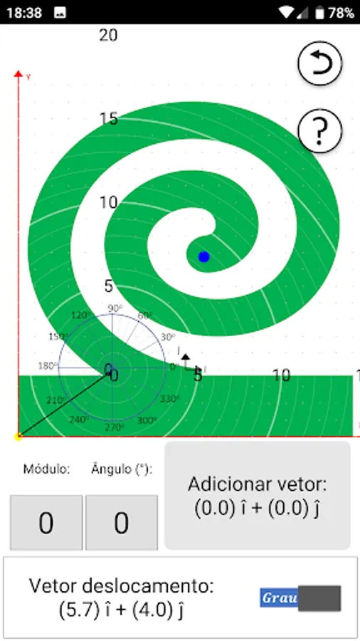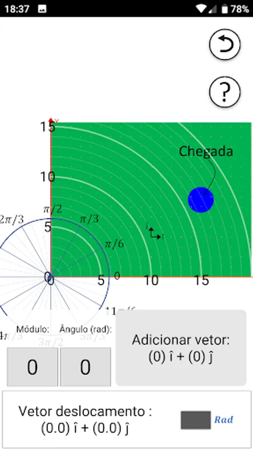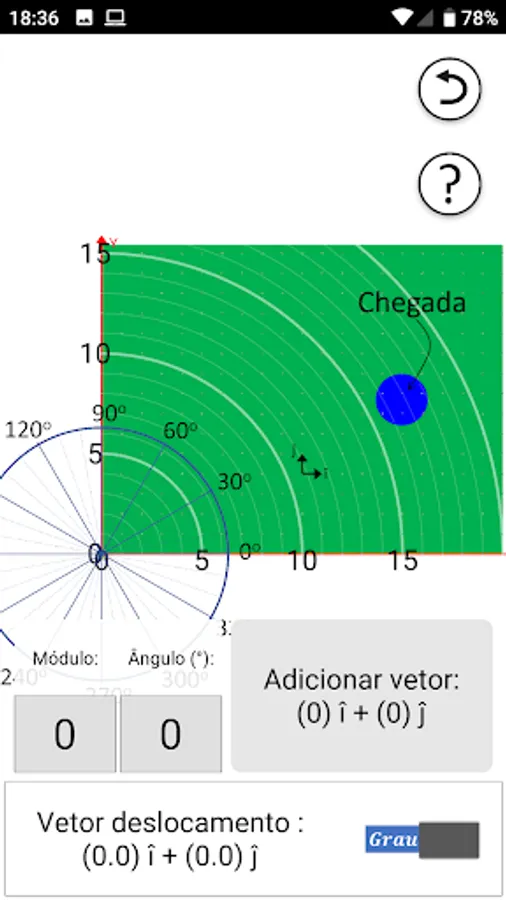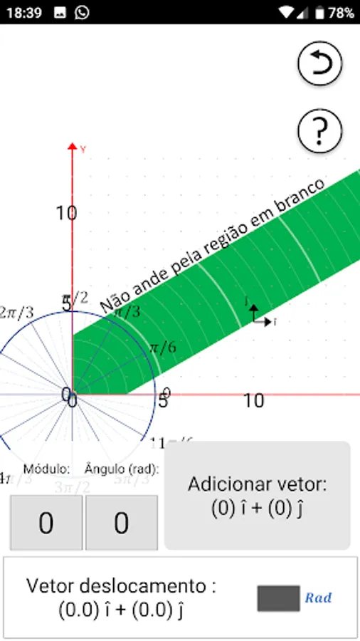 This game was developed to assist students in learning about vector notation, angles (degrees / radians) and polar coordinate. The game consists of stages containing different paths in each stage. The player must enter the steps that will take him to the stage's finish point. Vector notation is presented during the game and some concepts and questions about vector notation and sum are presented. We encourage players to try to reach the end of each stage with the fewest steps possible.