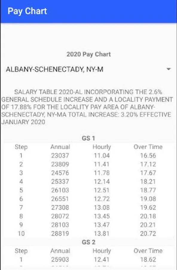 General Schedule (GS) Federal employees can use this tool to look up pay information for each locality. Browse step increases and pay increase information. Look up present and future Federal holidays and pay schedules for financial planning.
