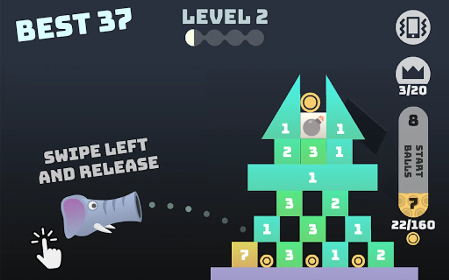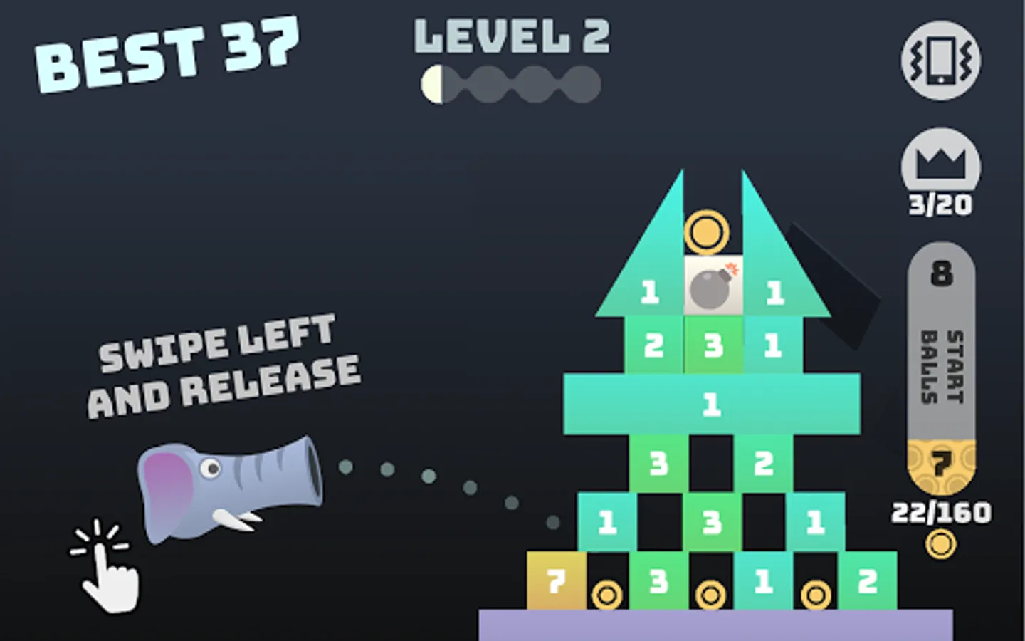 Take aim and FIRE! Swipe your finger to shoot balls and bombard towers until they tumble. Bounce your balls on each block a certain number of times to break it. How many towers can you destroy?