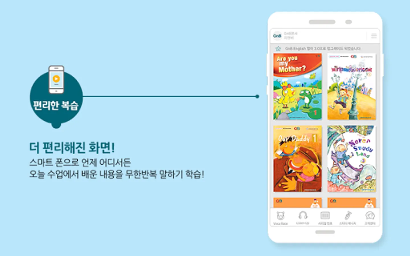 GnB English App is a differentiated English education program with GnB English-only patented English learning method and optimal speech recognition.