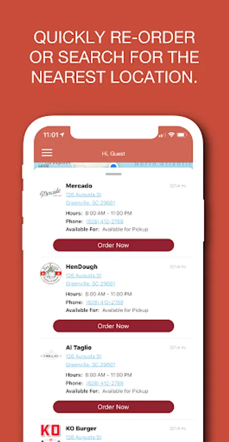 - View menus from your favorites including HenDough, Mercado Cantina, Al Taglio & KO Burger