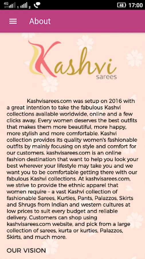 Kashvisarees.com was setup on 2016 with a great intention to take the fabulous Kashvi collections available worldwide, online and a few clicks away. Every women deserves the best outfits that makes them more beautiful, more happy, more stylish and more comfortable. Kashvi collection provides its quality women's fashionable outfits by mainly focusing on style and comfort for our customers.