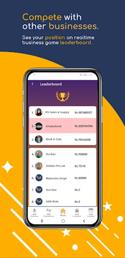 ❖ Compete With Other Businesses - Understand and gauge performance against peer businesses with a leaderboard showing your position on the basis of real-time business activities. It also provides a clear way to view the ongoing achievements of the entire team as members move towards a goal.