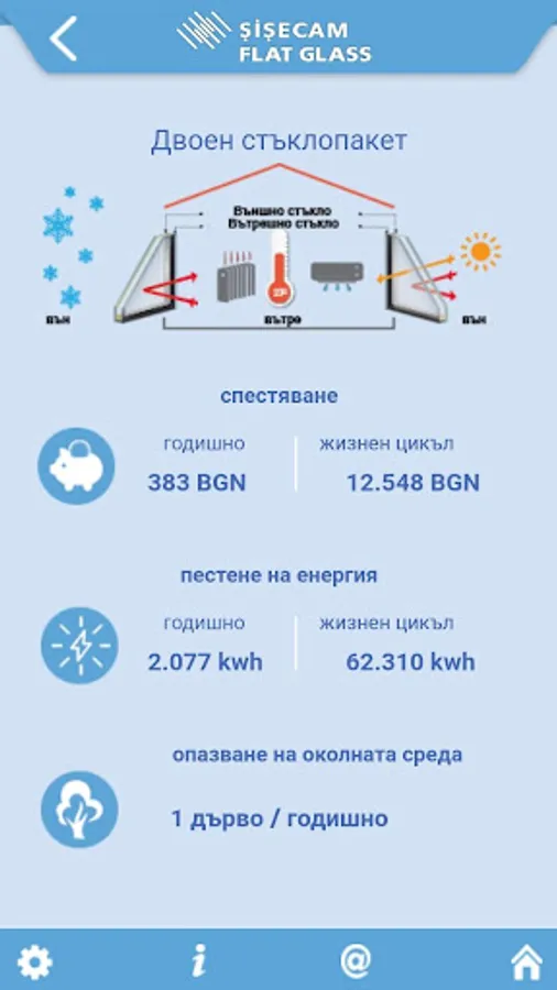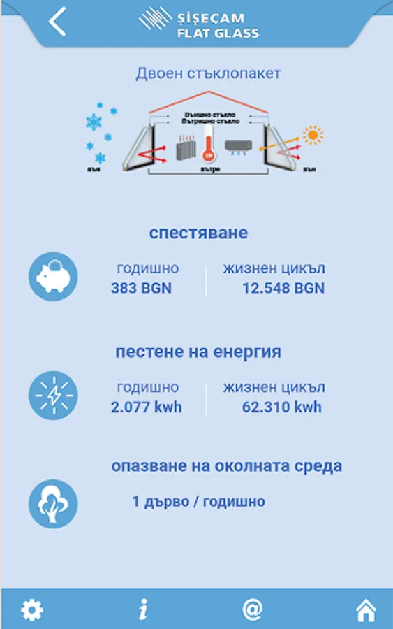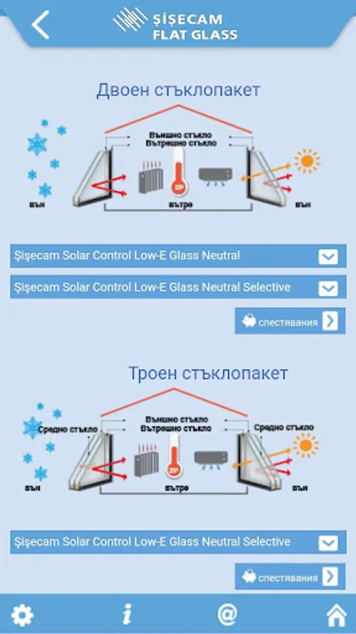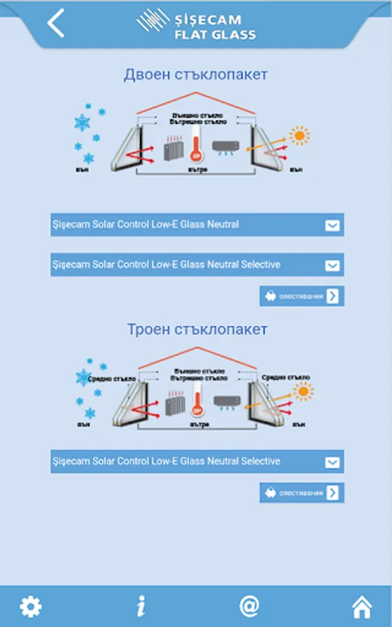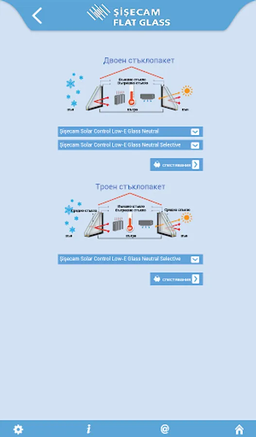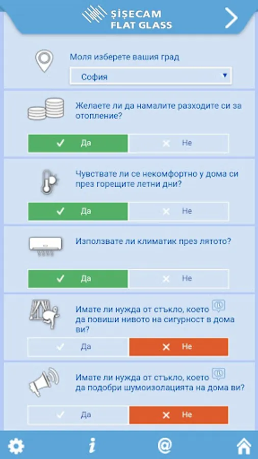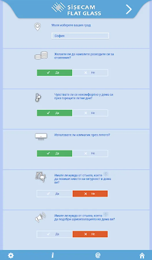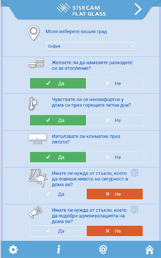 With ‘’Right Glass Bulgaria’’ , you can easily choose the most appropriate Insulating Glass Unit for your home by answering a few questions. Glass recommendations are provided according to your answers in terms of heat and / or solar control, noise control, safety and security requirements.