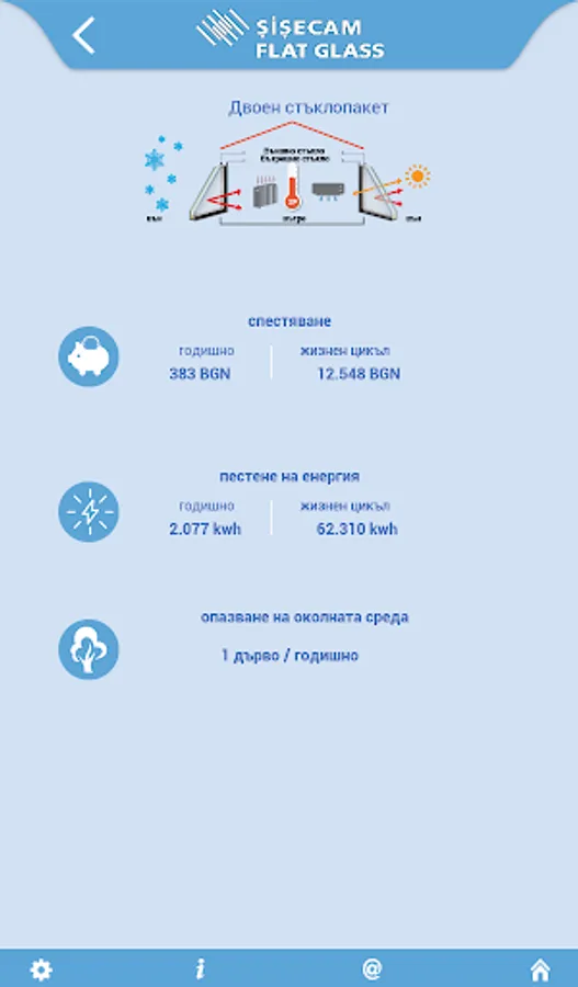Besides right glass solution recommendations, you can also see the heating and cooling energy savings per year and throughout the life of the building.