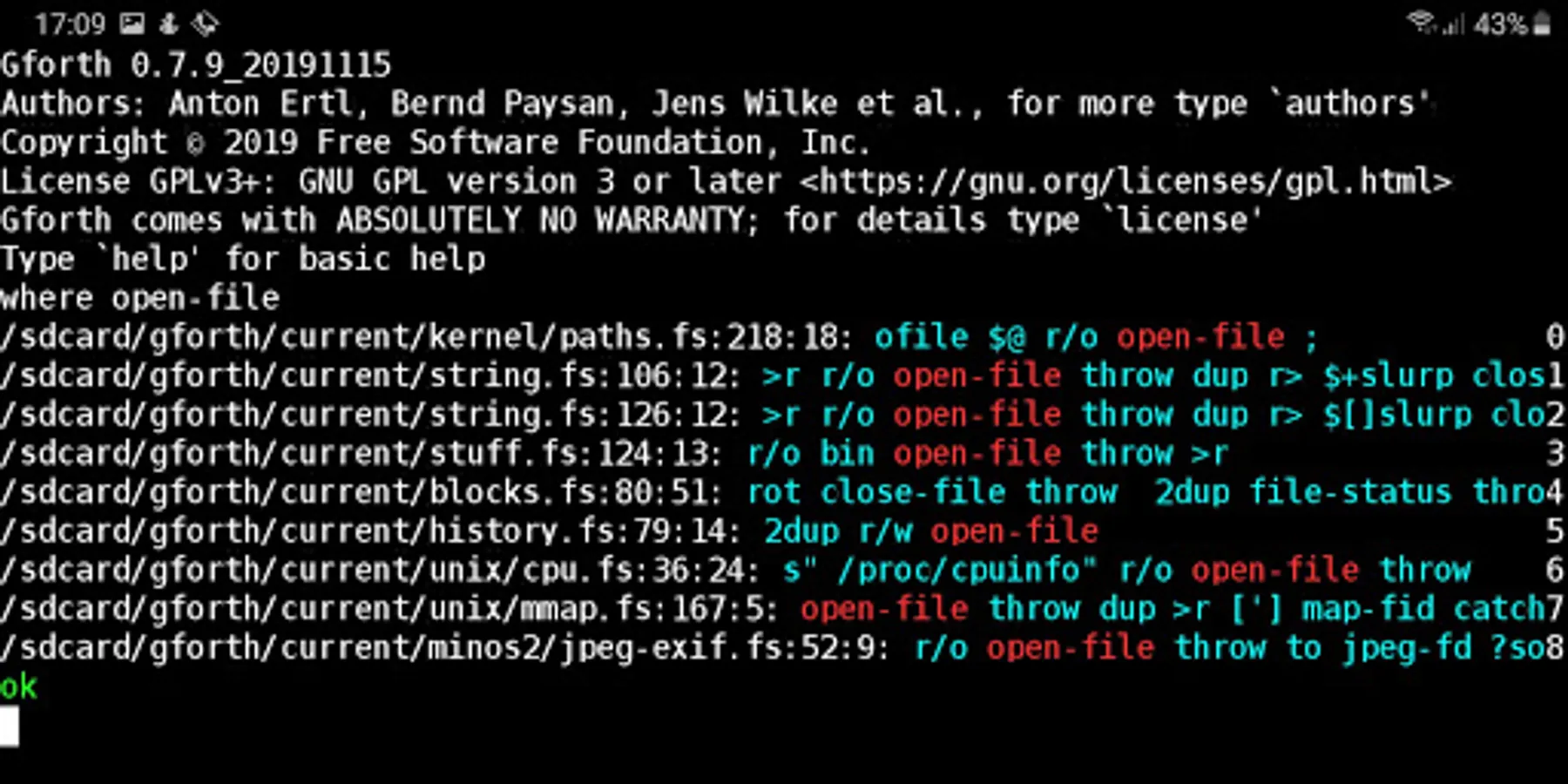 Gforth uses GCC to compile a fast direct or indirect threaded Forth; Gforth is fully ANS-Forth and Forth-2012 compliant. Authors of Gforth are Anton Ertl, Bernd Paysan, Jens Wilke, Neal Crook, David Kühling and others.