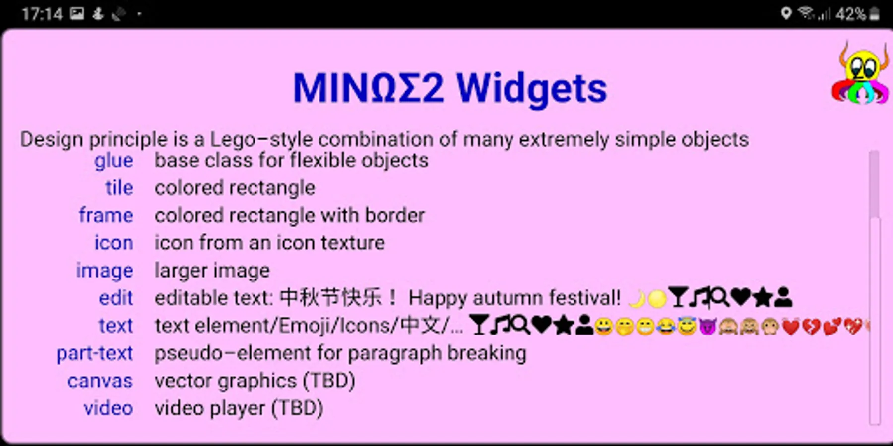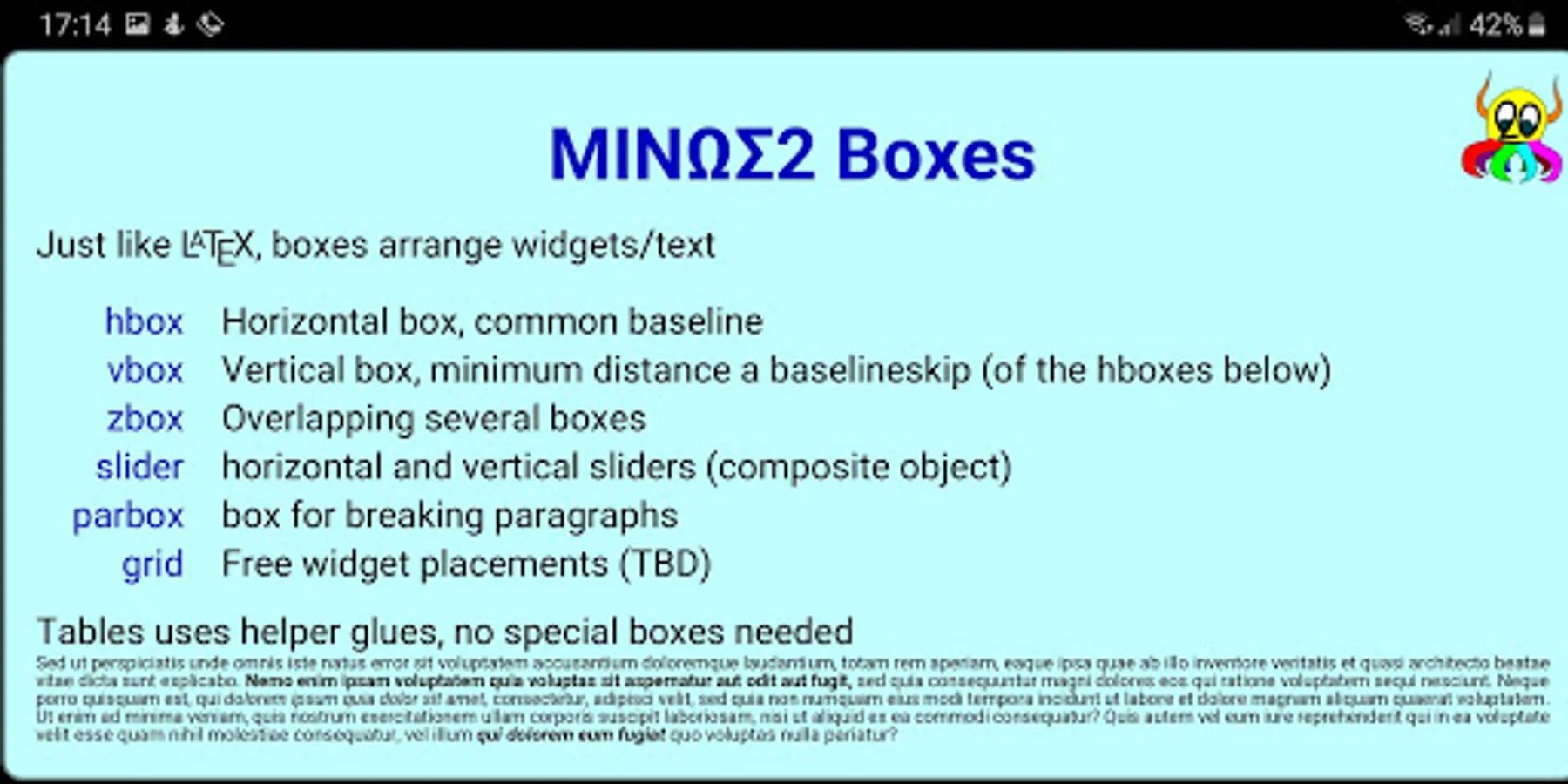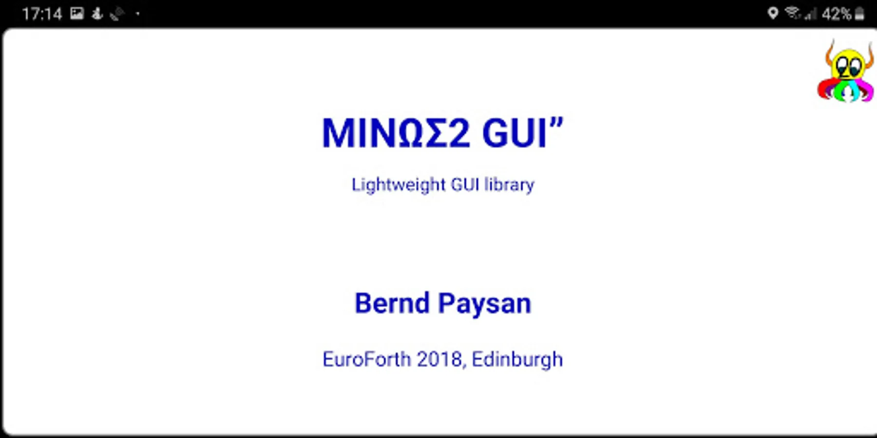 The Gforth apk installs three icons: One is the fast engine (Gforth fast), one the debug engine (Gforth ITC), where the single step debugger works, and the backtrace is precise even on exceptions, and the third one is the net2o protocol demo app, with the "Nettie" octopus. It's a demo now, so don't expect it to work flawless.