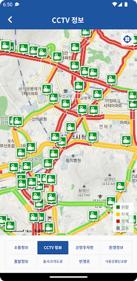Can see the real-time road traffic conditions, CCTV videos, the bus arrived and route search, subway lines, stops, public parking, environmental measurements, such as the Busan Transportation on comprehensive information can be used to search and