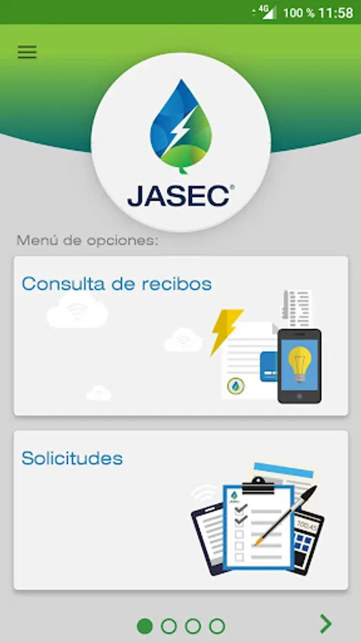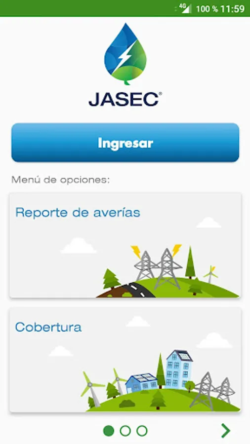 The app of the Administrative Board of the electric service of Cartago (JASEC) is a customer service center where the user can make queries and reports.