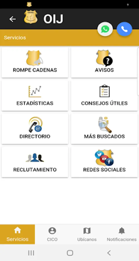 For all users, the OIJ CR App also includes a tip line to report crimes and a map of Judicial Investigation Police offices across the country.