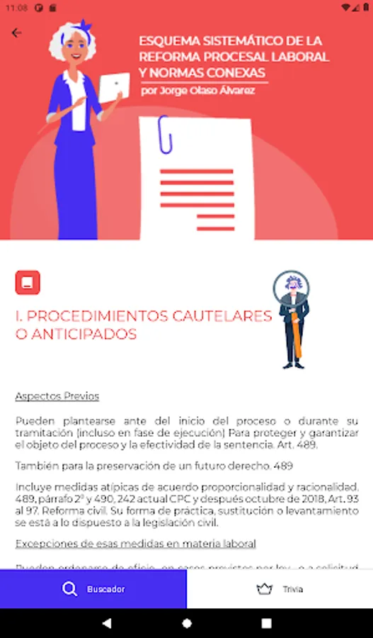 The application "Systematic Scheme of Labor Procedure Reform and Related Standards" also known as "Einstein and Leo PJ" is an interactive glossary that includes a keyword search engine through which the corresponding standard is identified. For its part, the application "Guiding Stages of Labor Procedural Law" is an interactive game to strengthen knowledge in labor law.