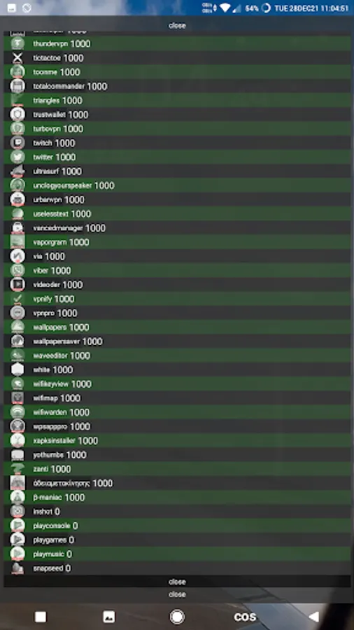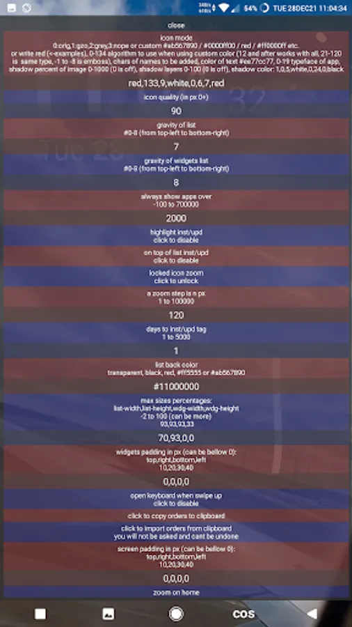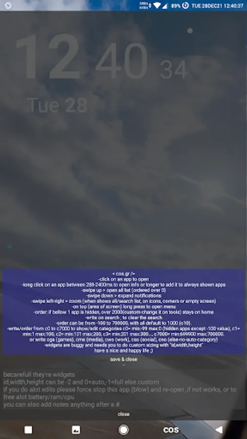 long press on top area of screen, or click on the empty icon app (of bLow app) to open tools/menu.