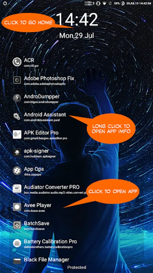 -long press SettingsIcon to restart Life Launcher(ex. if you install new apps/remove an app)